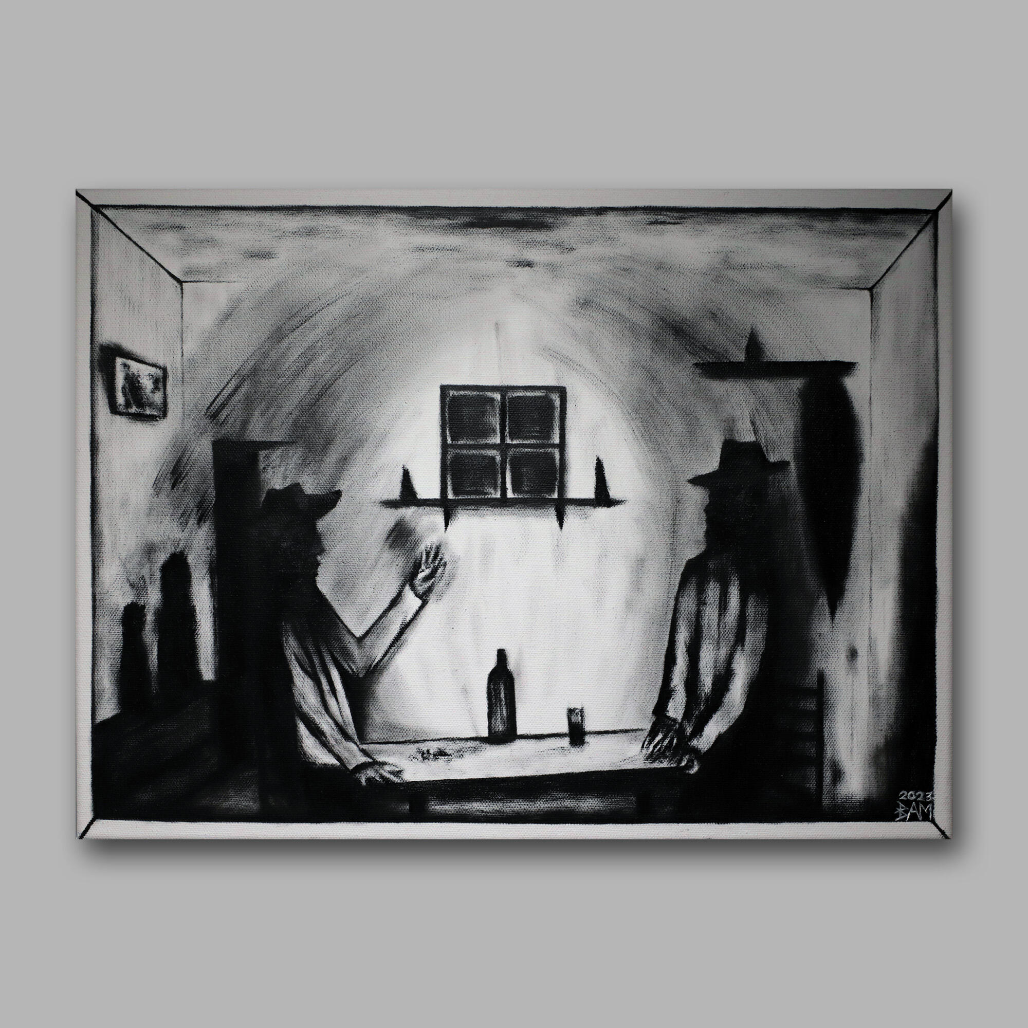 until the daylight comes.Price: 250 €Shipping: 30 €Medium: watercolorSize: 24x30cmMaterial: canvas panelFrame: oak & plywoodSigned certificate of authenticity.
